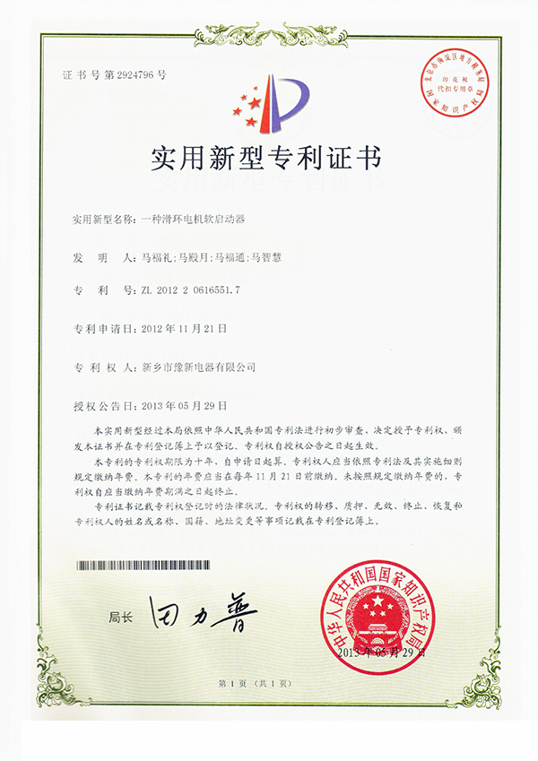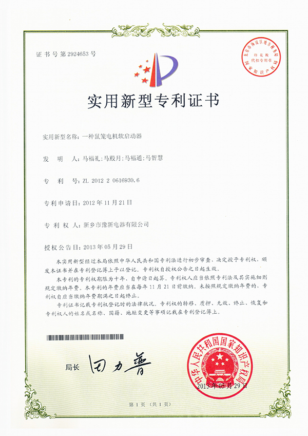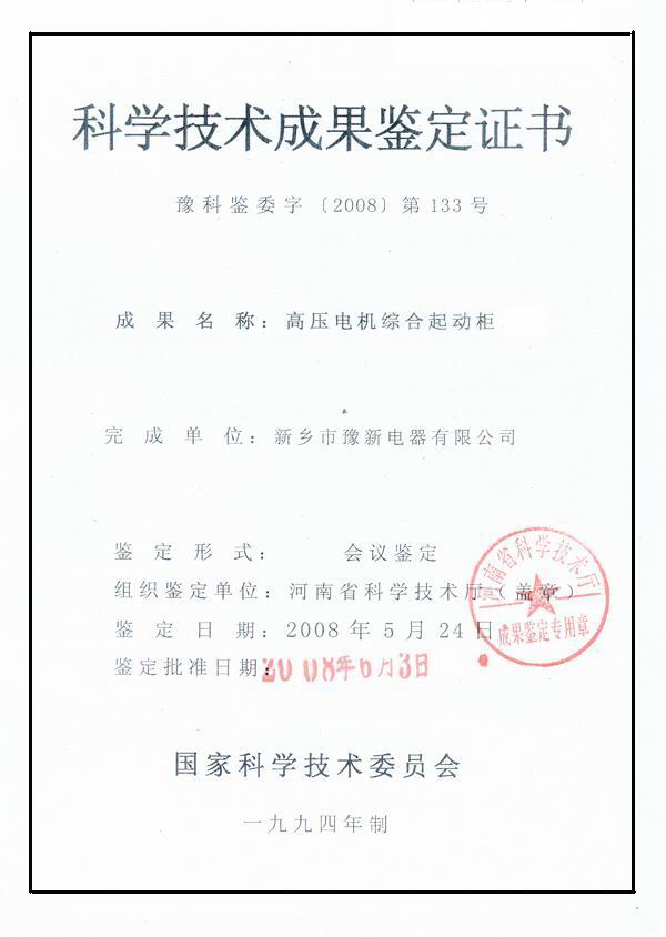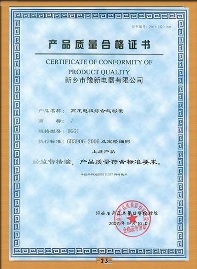 高壓綜合啟動柜產(chǎn)品質(zhì)量合格證書